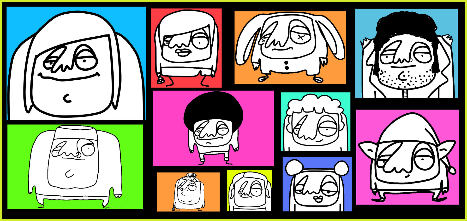 Colour in these cheerful characters using your own imagination. You can add simple stripes to their outfits, plain colours or very complex patterns…it’s up to you!